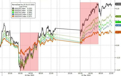 自上周五以来,2年期美债收益率已累计大涨了34个基点,颇有意思的是,大部分的债市抛售都发生在欧洲时段......