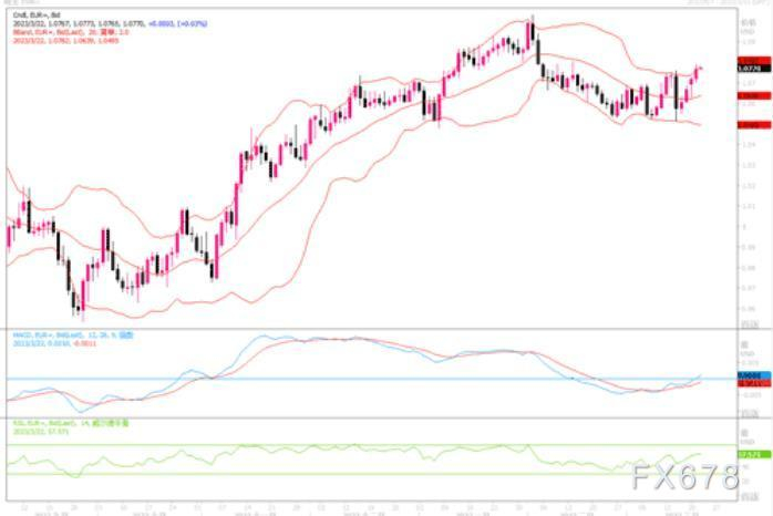 周二(3月21日)欧元兑美元尾盘上涨0.39%,至1.0761。投资者的关注点已经转移到本周将举行的一系列央行会议上,此前市场因对全球银行业的稳定性感到担忧而数日波动。市场预计,当美联储周三宣布其货币政策决定时,加息25个基点的可能性为85%。几周前,市场预计美联储指标隔夜利率的峰值为5.5%,而现在的预测约为4.8%。美元追随这些预期下跌,但金融市场的普遍紧张情绪尚未平息也一定程度上抑制了卖盘。今晚美联储若如期只加息25基点以及利率点阵图降低了美元利率的峰值预测的话,那么应对美元是构成负面影响的,而欧元兑美元则会借机得到蹿升的机会。隔夜外汇市场上,欧元兑美元已穿越进一个月以来横盘的上方强阻力1.0750水平,汇价处于各短期均线上方,各类技术指标朝上摆,显示欧元多头力量似乎在聚集。留意晚间美联储利率会议的结果和会后的声明对汇市的影响。上方若继续上行捅穿1.08,则有望向2月初的高点1.1034进击。下方目前在1.05之上似已形成较强的支撑所在。