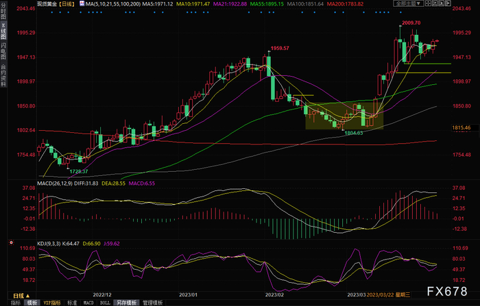 整体来看,银行业危机的影响已经逐步消退,市场目光已经重新转向通胀和美联储加息预期的变化,晚间的PCE数据料将提供进一步指引,从市场预期来看,美国通胀依然高企,这将增加美联储的加息压力,偏向利空金价。但如果通胀回落速度意外超过预期,料将进一步打压美元并支撑金价;从技术面来看,金价回到所有均线上方,短线有望再次试探2000关口上方阻力。