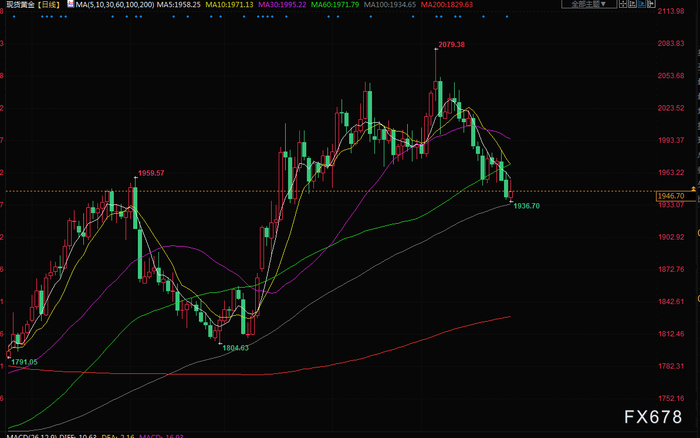 黄金在上周五回吐了一些涨幅,并势将连续第三周下跌,因可能在最后一刻达成债务上限协议,以及美国通胀指数比预期的要高。白宫和国会共和党人旨在为提高债务上限两年的协议做最后的磋商。黄金在亚洲交易时段触及两个月低点1936.59美元,本周将下跌1.7%。