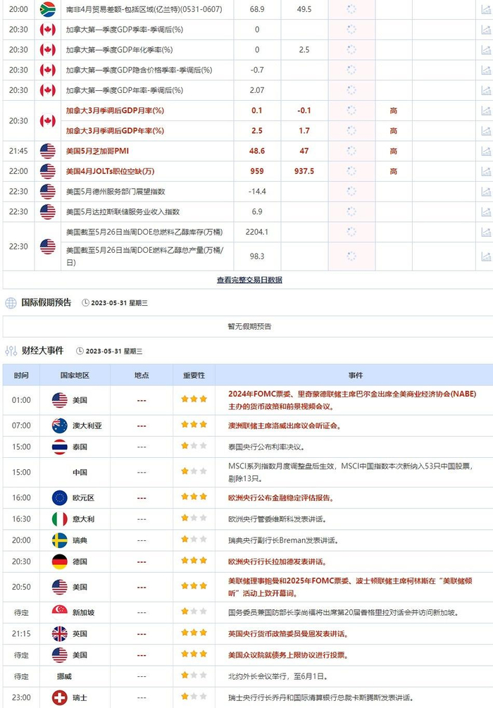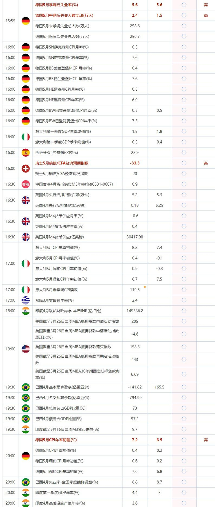 5月31日重点数据和大事件前瞻