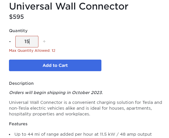 目前通用壁挂连接器售价595美元一个,普通消费者最多一次性下单12个,订单将于今年10月开始发货。