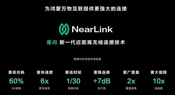 据介绍,相比传统无线连接,星闪功耗降低60%、传输速率提升6倍,具备更低时延、更稳定连接抗干扰能力,覆盖距离提升2倍,连接数提升10倍,旨在“为鸿蒙万物互联提供更强大的连接”。