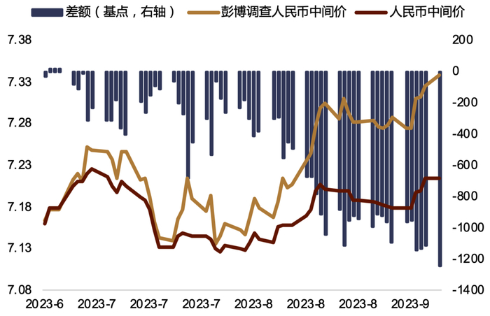 图表6:彭博调查中间价与实际中间价差额