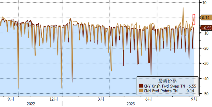 图表5:离岸人民币TN期限掉期回正,显示离岸人民币融资成本与美元相当