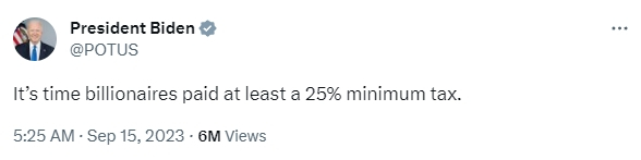 汇通财经APP讯——北京时间周五(9月15日)凌晨,美国总统拜登发布一则简短有力的推文,表示美国亿万富翁是时候缴纳25%的最低税款。美媒快速展开推特投票,仅3万投票人中,有超过70%的人表示支持。美媒指出,拜登向国会提交的新预算中,还将把年收入40万美元者的最高税率从37%提高到39.6%。