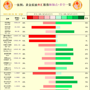 一张图:2023/09/26黄金原油外汇股指"枢纽点+多空占比"一览