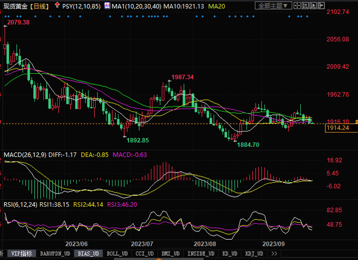 汇通财经APP讯——周一(9月25日),尽管利率上升,但美国经济仍保持弹性,美元指数延续涨势,一度刷新逾十个月高点至106.10,且连续五个交易日上涨,令金价小幅承压下行。现货黄金价格周一收跌0.50%(或9.60美元),收报1915.06美元/盎司。