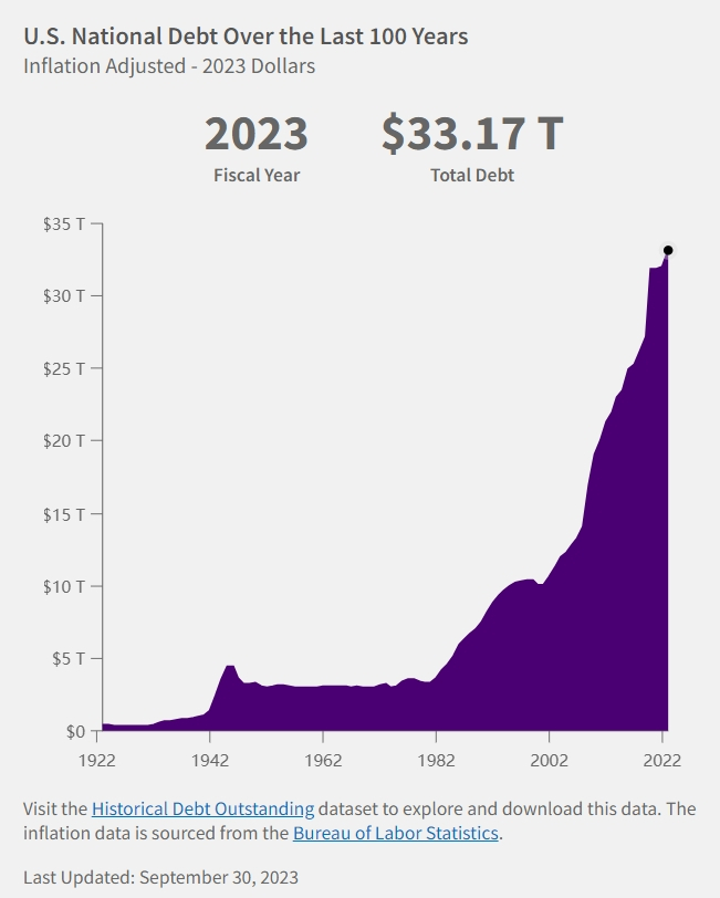 根据美国财政部官网的数据,截至今年9月美国国债规模达到33.17万亿美元,自2020年新冠疫情爆发后快速上升了45%,其中有约27万亿美元由公开市场持有。另外,美国政府为了资助一系列的财政投资政策,光是去年就又产生了1.7万亿美元的赤字。在美联储加息的影响下,2023财年美国支出的净利息成本就达到6590亿美元。