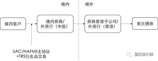 在TRS模式下,国内券商一般通过其香港子公司、外资银行境内分行通过在港分行进行美元债资产配置,在期末交割时,券商或外资行和香港子公司或分行进行内部对冲结算。美元债券仅收益部分需要从境外回到境内,买入境外债券和境内客户不产生直接关系,债券的投资收益(扣除境外融资利息后)以境内保证金利息的形式返还给境内客户。