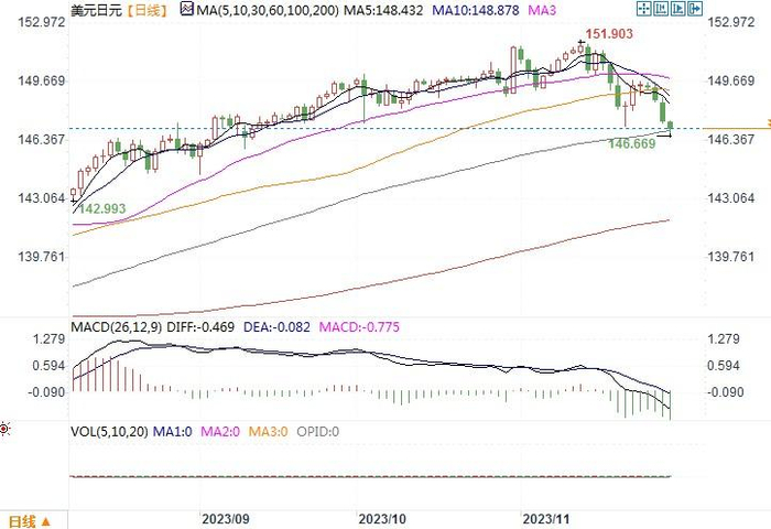 周二(11月28日),美元指数周二盘中曾跌至逾三个月来最低102.60,美元兑日当日下跌0.8%,至147.49。周二当天,在美联储理事、鹰派决策者沃勒暗示几个月后可能降息后,继续提升市场对于美联储明年降息的预期概率,美元进一步走跌。日本方面,日本读卖新闻周二报导,日本顶级商业游说组织--经济团体连合会(简称经团连)将在下月的高管会议上讨论弱势日元对经济的潜在负面影响。经团连的成员包括大型汽车制造商和电子公司,传统上赞成日元疲软,曾经呼吁政府避免日元大幅升值,以免削弱日本出口产品在海外的竞争力。经团连对弱势日元弊端的任何讨论,都将凸显出日本商界改变了对日元走势及其对经济影响的看法。该报导称,经团连立场转变可能会加剧商界要求日本央行结束超低利率的呼声。若日本央行果真有加快结束宽松的举动,那对于日元的抬捧力料不会小。日线图上观察,美元/日元已然跌穿上一周的低点147.14水平,下方进一步的目标将是7-11月升势的斐波那契38.2%回撤水平146.30,进而是50%回撤位144.55。上方149.70附近构成较强的阻力。
