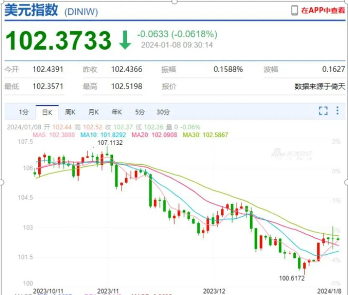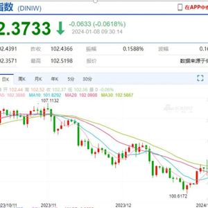 今日(1月8日),亚市早盘,截至北京时间9:30,美元指数报102.3733。