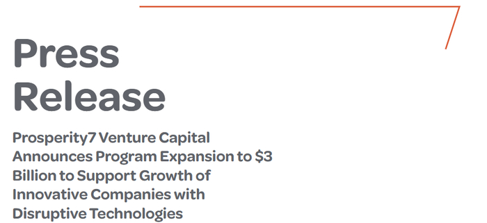 规模10亿美元的Prosperity7 Fund,投资于能源领域以外的颠覆性技术企业;