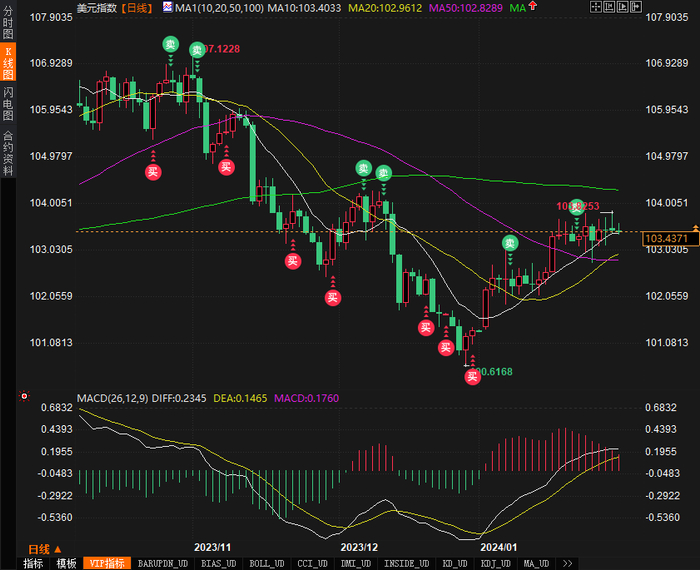 在外汇市场,衡量美元兑六种货币的美元指数稳定在103.50附近。10年期美国国债收益率持续下跌,下跌4个基点,至4.051%。欧元兑美元交易在1.0823美元,接近周一触及的七周低点1.07955美元,原因是交易商调整了对欧洲央行何时开始降息的预期。