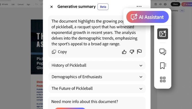 在目前的测试阶段,Acrobat的个人订阅用户(12.99美元或19.99美元/月),以及团体订阅用户可以率先用上AI助手。公司明确表示,后续会面向Adobe Reader和Acrobat用户推出额外的收费档位,不过并未透露测试将持续多久。