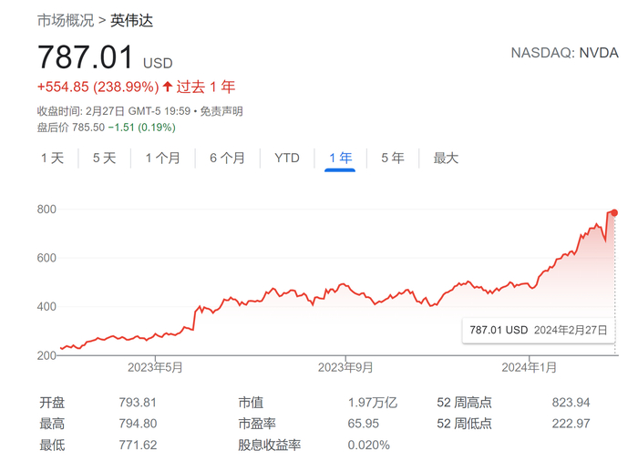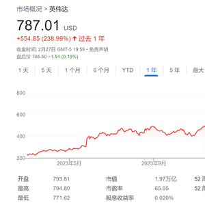 自去年年初以来,英伟达的股价飙升了五倍多,使这家半导体公司的市值超过了亚马逊和Alphabet,达到了近2万亿美元。人工智能公司对其GPU产品的巨大需求推动该公司上季度营收同比增长265%,达到220亿美元以上。净利润同比增长769%至123亿美元。