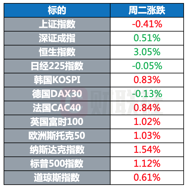 全球主要股指涨跌互现,美股三大指数集体上涨,标普500指数和纳指涨超1%。