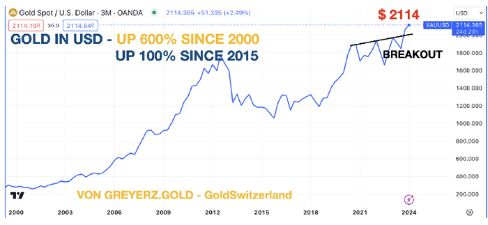 但他强调,黄金不仅会继续保持购买力,而且会表现得更好。这是由于所有泡沫资产,股票、债券、房地产等即将崩溃。世界将无法避免一切崩溃,或者先是逐渐然后突然一切崩溃, 正如Egon在2023年的两篇文章中所写的那样。