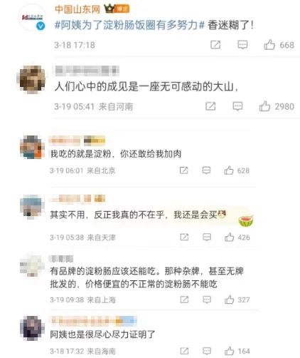 所以,误会解除之后,“肠妃回宫”的词条又冲上了热搜,许多网友说“错怪淀粉肠了”,还要继续宠幸淀粉肠。