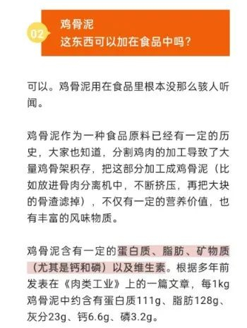 当然比起新鲜的肉块,鸡骨泥的营养并没有那么多,但并没有网上说的那么骇人听闻。