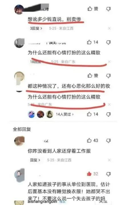 他们不知道的是,这个母亲在售楼处上班,化妆只是工作需要,孩子出事后,她连工作服都没有换就跑了过来。