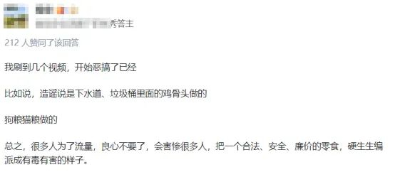 由于它恰好卡在了3·15的时间节点,再加上一些无良媒体恶意引导剪辑,键盘侠集体开喷,最后有人助攻,造谣恶搞,说淀粉肠是下水道、垃圾桶里面的鸡骨头做的。