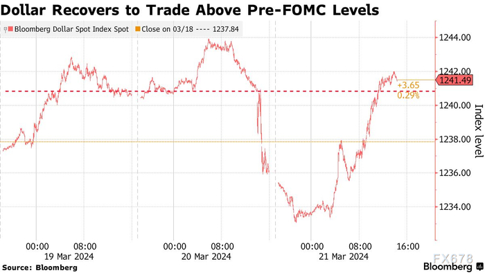 Monex的外汇交易员Helen Given周四表示:“瑞士央行的行动增加了其他十国集团(G10)央行的压力,要求他们比预期的要早一点降息。鲍威尔的言论看起来比市场最初理解的更为鹰派,因此美元从中受益。”