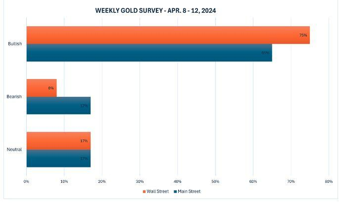 根据最新的Kitco News每周黄金调查,华尔街的情绪甚至比散户交易员更为乐观。由于对最新高点回调的担忧被对地缘政治动荡的更大担忧所淹没,机构投资者对黄金的前景持更加积极的态度。