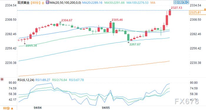 汇通财经APP讯——周五(4月5日),现货黄金涨势不止,将纪录新高刷新至2327.13美元/盎司。截至发稿,现货黄金现报2325.90美元/盎司,日内上涨1.53%。