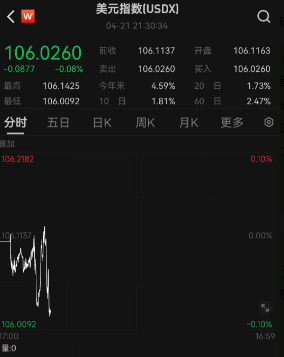 今日(4月22日),截至北京时间9:30,美元指数报106.0260。