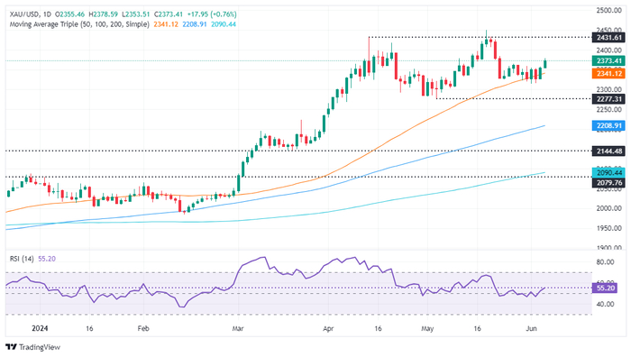FXStreet分析师Christian Borjon Valencia指出,金价在2320-2360美元/盎司区域盘整后延续涨势,买家攻克区间顶部为金价进一步上涨打开大门。由于相对强弱指数(RSI)仍然看涨,势头仍在买方一方。