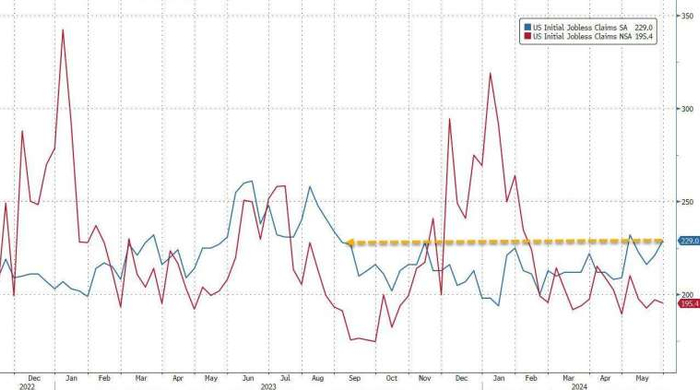 美国劳工部周四公布的数据显示,截至6月1日当周,经调整后美国初请失业金人数升至22.9万人,高于市场预期的22万人,创下4周新高。