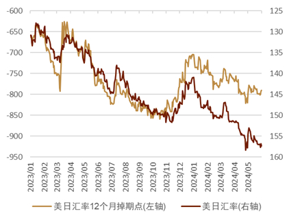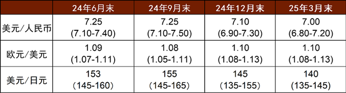 往2024年末走,我们认为美国经济或会出现一定疲软,市场或对美联储产生降息预期,同时我们认为日本央行或在2024年下半年连续加息,届时在货币政策收敛的逻辑下,日元或能出现拐点,出现由弱变强的迹象。我们认为2024年4季度美元日元汇率的中枢或在145附近。