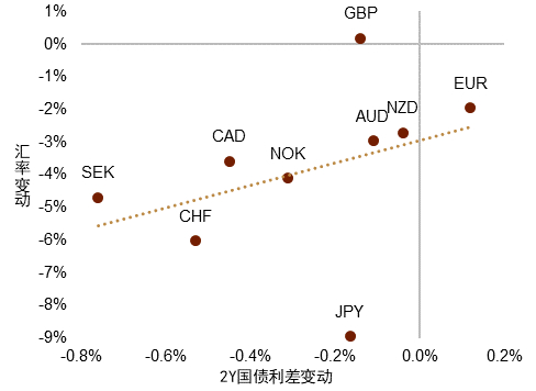 图表4:G10货币兑美元变动 vs. 2Y国债收益率差