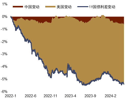 图表24:中美利差变动主要由美元利率的波动贡献