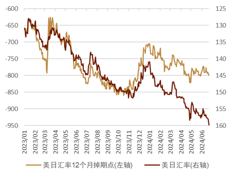 日本当局或不一定会干预 目前美日汇率收盘于159.80、距离160的整数关口近在咫尺,160附近也是上一轮日本当局开启外汇干预的点位。部分市场投资者对于日本当局在160再度实施外汇干预存在一定预期,但是我们认为日本当局充分存在160不去干预的可能性。原因之一来自于上述的汇率操纵国监视名单、之二为日本平成时代之后(1989年之后)日本当局从未出现过死守某一个点位的前例。死守某一点位反而会招致更多投机性资金的参与,进而反而会囤积日元大幅贬值的压力,并非为理性之举。因此,期待日本当局在160干预汇率的投资者的期待落空后,我们认为存在日元小幅加速贬值的可能性(如同4月的行情一般)。我们提醒投资者留意日元进一步贬值的可能性。