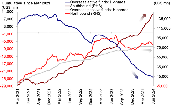 图表:海外主动型基金持续流出海外中资股市场