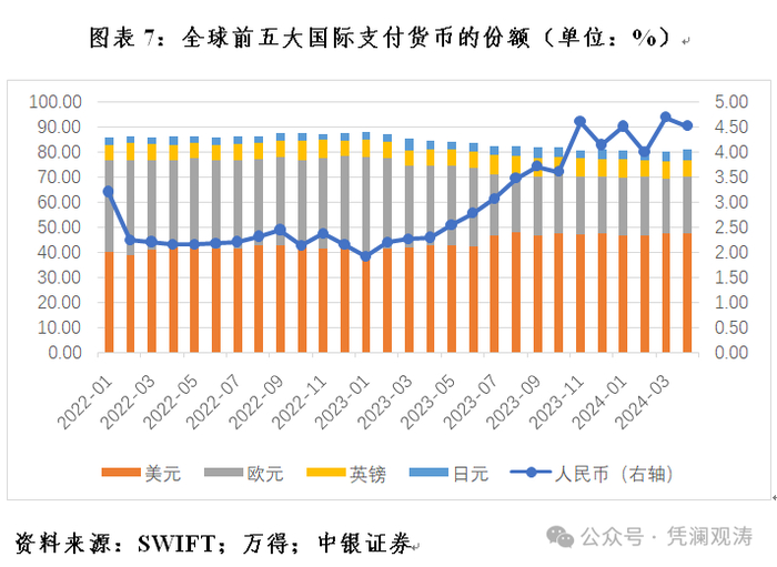 2024年一季度人民币的国际储备与国际支付功能此消彼长
