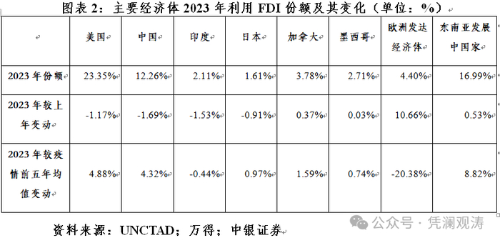 2023年中国利用外资份额回落但高于疫情前趋势值