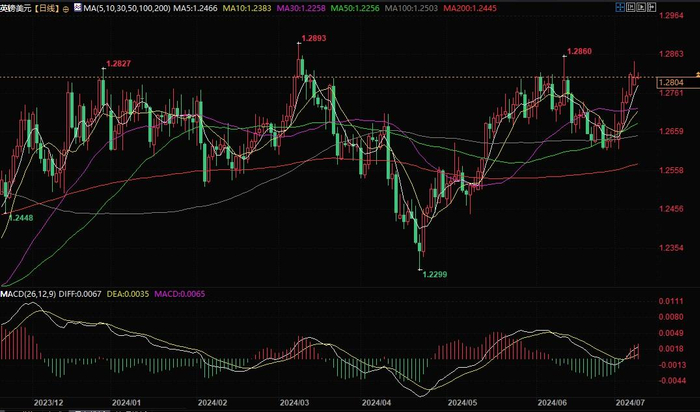 英镑兑美元日线图北京时间7月9日10:56,英镑兑美元报1.2804/05