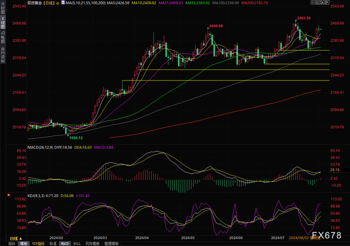 (现货黄金日线图,来源:易汇通)北京时间07:48,现货黄金现报2445.40美元/盎司。