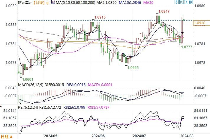 欧元兑美元日线图来源:易汇通北京时间8月5日14:46 欧元兑美元 报 1.0911/12。