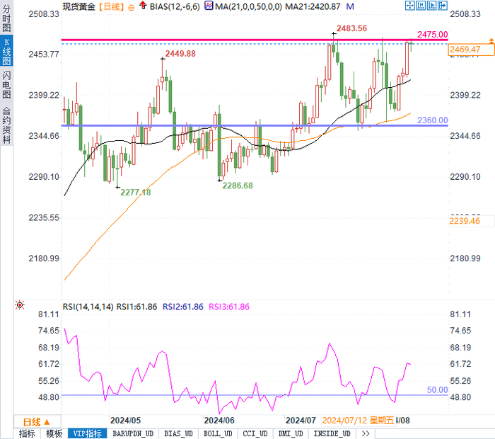 知名机构分析师Tim Waterer指出,黄金在本周初表现强劲,但由于一些轻微的获利回吐,价格适度回落。如果美国通胀数据表现较弱,将重新点燃市场对美联储9月大幅降息的希望,金价将受益。此外,黄金价格的波动也与中东局势紧密相关。近期,随着伊朗与以色列之间的紧张局势升级,市场对黄金的避险需求增加,推动了金价的上涨。