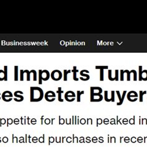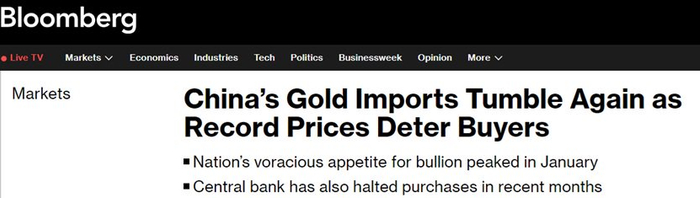 彭博社指出,黄金进口量的急剧下降表明,价格高企对中国买家的影响有多么严重。