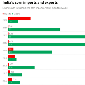 印度政府的数据显示,今年约有350万吨玉米用于生产13.5亿升乙醇,约为去年同期的四倍。