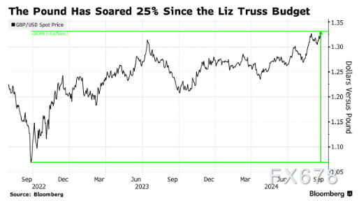 尽管其他央行都在加快宽松步伐,但英国央行采取渐进式降息策略,这意味着英镑已成为寻求更高相对回报的投资者的热门投资对象。市场定价显示,市场押注英国央行11月下次会议上的降息幅度将低于25个基点。