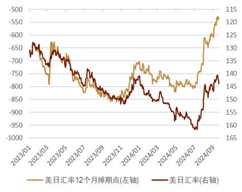 图表13:美日汇率与美日汇率12个月掉期点的走势