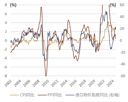 日本通胀成本推升压力暂时放缓上周五日本公布了8月CPI的数据,综合CPI同比为3.0%(高于美国)、除去生鲜食品的CPI同比为2.8%,基本符合预期。通胀细项来看,成本推升因素与需求拉动因素基本并驾齐驱(图表15),成本推升因素虽然边际稍有扩大趋势,但是在近期日元升值的背景下,我们发现PPI、进口物价同比等指标出现了向下的拐点(图表16)。往年底看,我们认为日本的综合通胀与核心通胀或仍能稳定在2.5-3.0%附近。