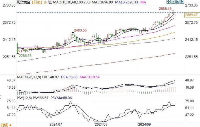 现货黄金日线图来源:易汇通北京时间9月27日13:46 现货黄金报2663.70美元/盎司