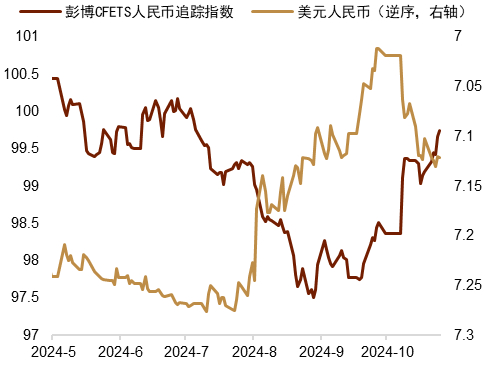 关注中美经济数据表现 本周美国将公布9月PCE价格指数,10月ADP、非农等就业数据及ISM制造业PMI等重要经济数据,中国则将公布10月制造业及服务业PMI。我们认为本周的关键或在于美国就业数据能否持续降温,若其失业率明显上行,或触发市场对美联储降息预期的升温,进而缓解当前偏强的美元利率与汇率水平。此外,亦需关注中国10月PMI表现,若10月经济数据延续改善趋势,或能对风险情绪起到一定提振作用。此外,我们认为需继续关注“特朗普交易”以及对中国财政刺激预期的变化。综上,在稳汇率政策支持下,我们认为短期内人民币汇率波动或趋于稳定,下跌空间或有限。